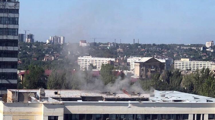Донецкие телеграм-каналы сообщают, что во время обстрела центра Донецка 17 сентября в здание "администрации" Ворошиловского района прилетело четыре снаряда.