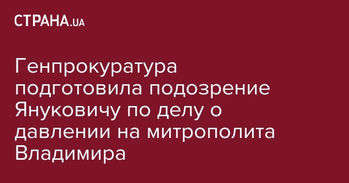 Генеральная прокуратура Украины намерена сообщить бывшему президенту Украины Виктору Януковичу о подозрении по делу о давлении на ныне покойного главы Украинской православной церкви Московского патриархата митрополита Владимира.
