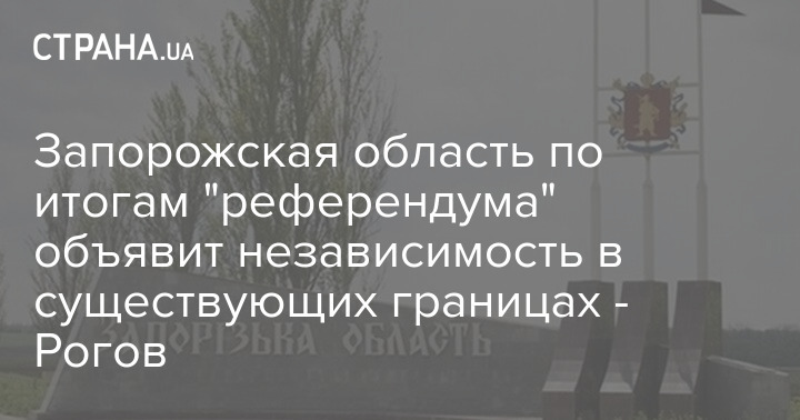 Запорожская область по итогам "референдума" объявит независимость в существующих границах - Рогов
