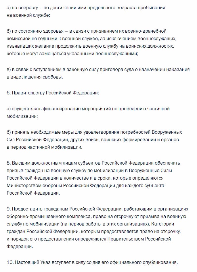 На сайте Кремля уже появился полный текст указа Путина о частичной мобилизации в России.