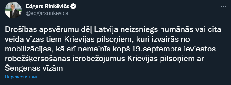 Латвия не будет выдавать гуманитарные визы гражданам РФ, которые бегут от мобилизации.