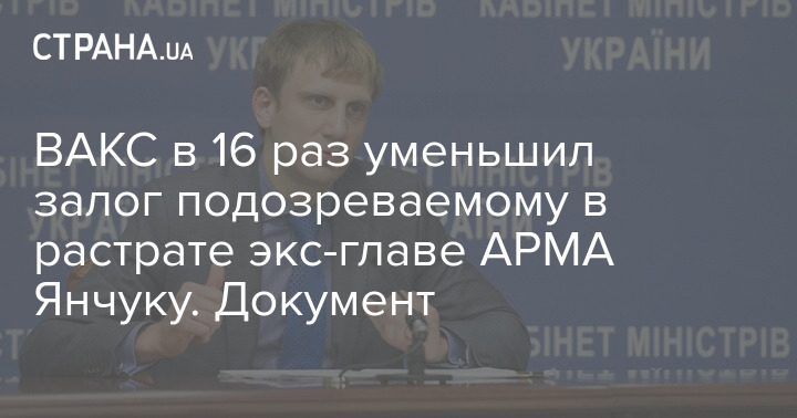 ВАКС в 16 раз уменьшил залог подозреваемому в растрате экс-главе АРМА Янчуку. Документ