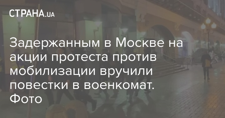 Российские Telegram-каналы сообщают, что сразу в нескольких московских отделениях полиции задержанным на акции протеста против мобилизации вручили повестки в военкомат.