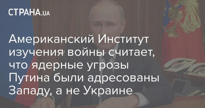 Американский Институт изучения войны считает, что ядерные угрозы Путина были адресованы Западу, а не Украине