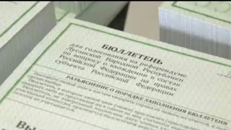 На бюллетенях описано разъяснение относительно проведения "референдума". В конце указан вопрос: "Вы за вхождение "ЛНР" в состав РФ на правах субъекта РФ". Предлагается два ответа - "да" или "нет". Судя по видео, бюллетеней уже напечатали много.