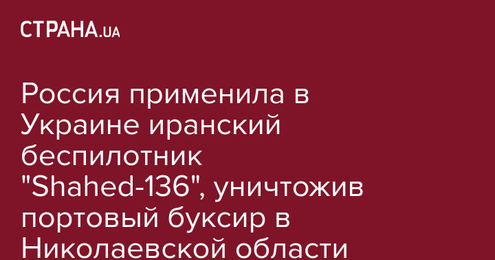 Россия уничтожила портовый буксир в Очакове Николаевской области с помощью иранского беспилотника "Shahed-136".