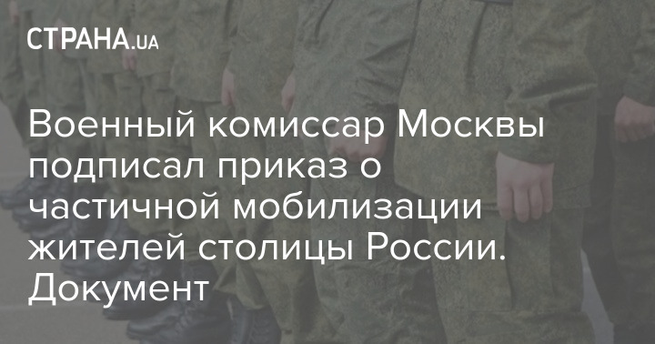 Военный комиссар Москвы подписал приказ о частичной мобилизации жителей столицы РФ.