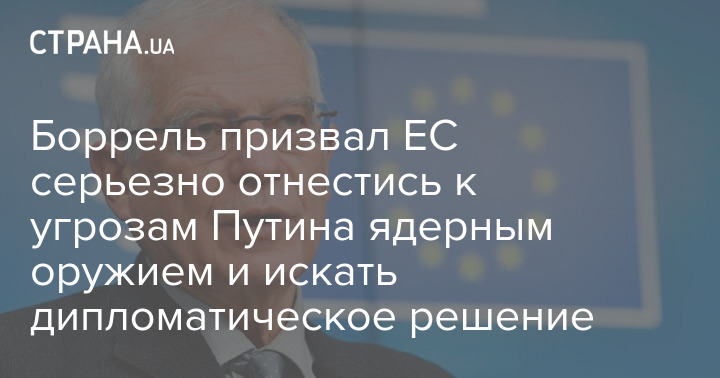 Европейский Союз должен серьезно отнестись к угрозам президента РФ Владимира Путина применить ядерное оружие в конфликте в Украине и выходить на "дипломатическое решение". Об этом заявил глава внешнеполитического ведомства Евросоюза Жозеп Боррель в интервью ВВС.