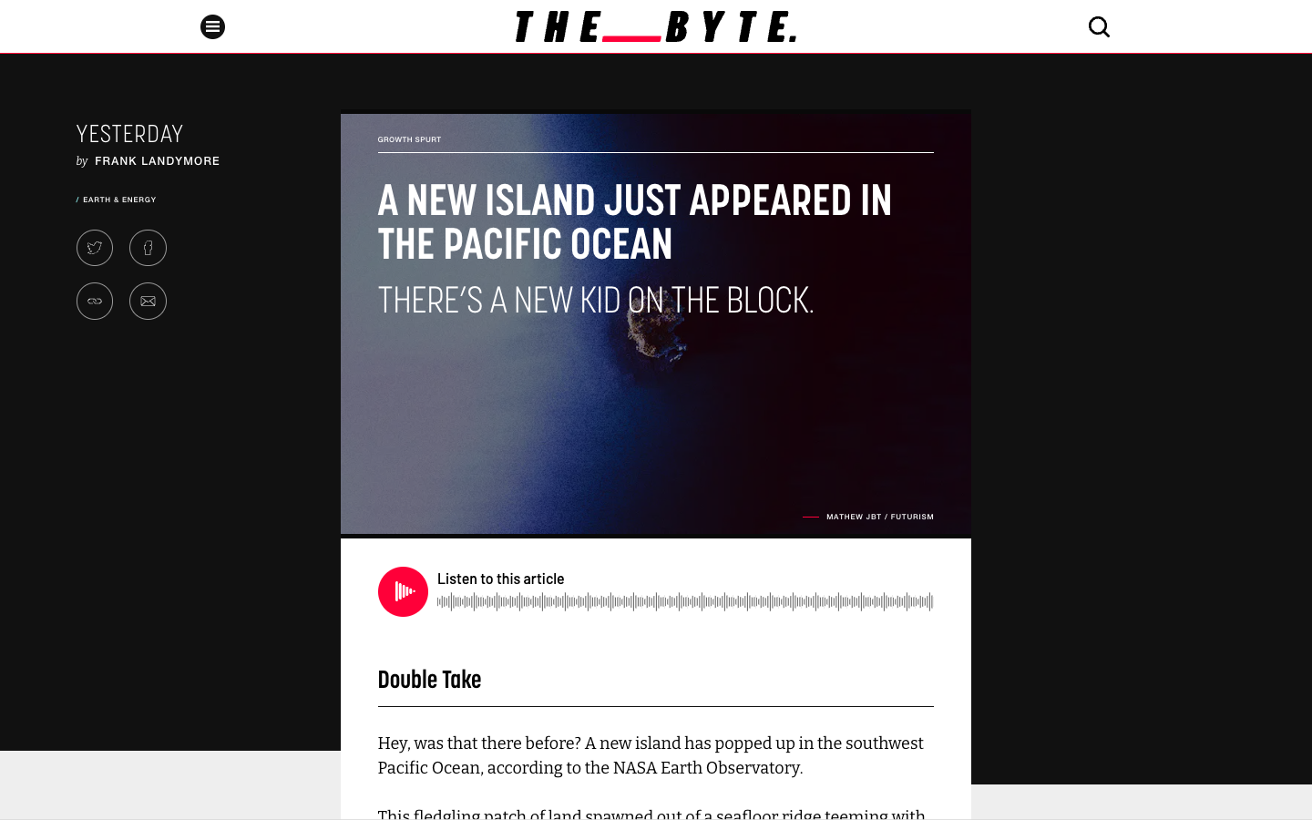 Место, где возник остров, отличается самой высокой активностью подводных вулканов в мире. Вулканические острова часто недолговечны и смываются за пару недель, но есть и исключения. Некоторые из них могут просуществовать несколько десятилетий и даже обзавестись собственной экосистемой.