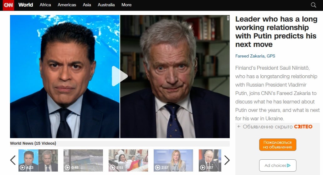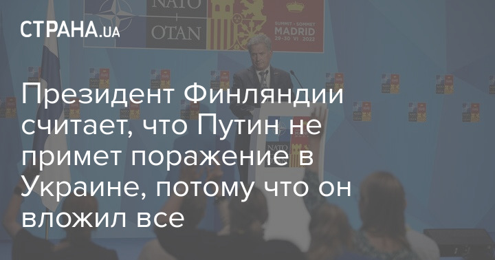 Ниинистё заявил, что в течение многих лет он наблюдал за президентом РФ и понял его эволюцию мышления. По его словам, Путин "вложил все", и не примет "какое бы то ни было поражение".