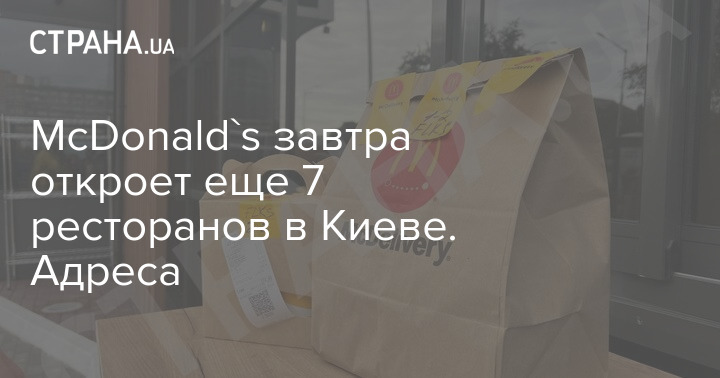 McDonald's открывает в Киеве еще семь ресторанов, то есть, в Киеве будут работать на доставку уже десять заведений, в том числе, и на правом берегу Киева.