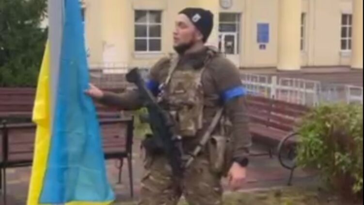 Видео поднятия украинского флага на станции Купянск-Узловой бойцом подразделения "Кракен".