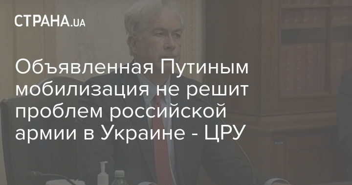 Глава ЦРУ Уильям Бернс считает, что частичная мобилизация не решит проблемы армии РФ в Украине.