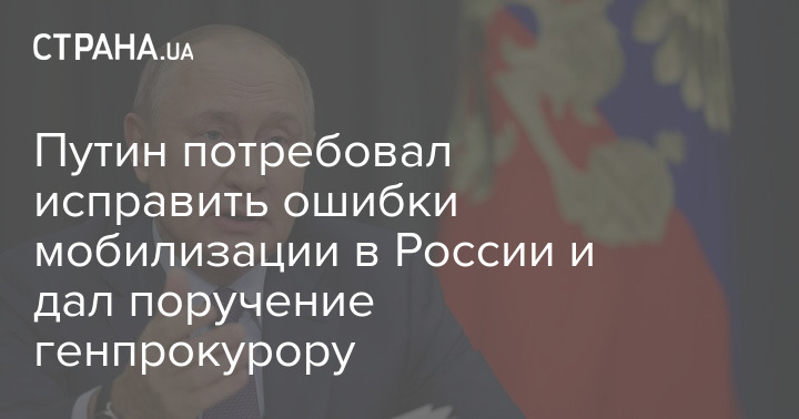 Президент России добавил, что необходимо исправлять все ошибки во время мобилизации и возвращать домой тех, кто призван неправомерно. Генпрокурор РФ должен незамедлительно реагировать на нарушения в ходе мобилизации, отметил он.