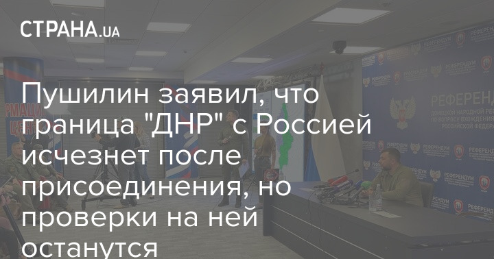 "Глава ДНР" Денис Пушилин заявил, что после присоединения к России граница между РФ и "республикой" исчезнет. Однако проверки на "бывшей границе" проводить все равно будут.