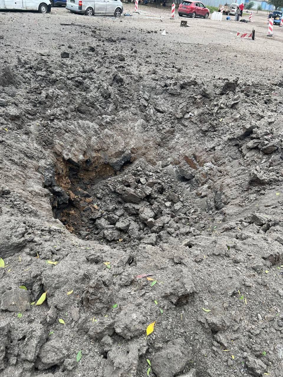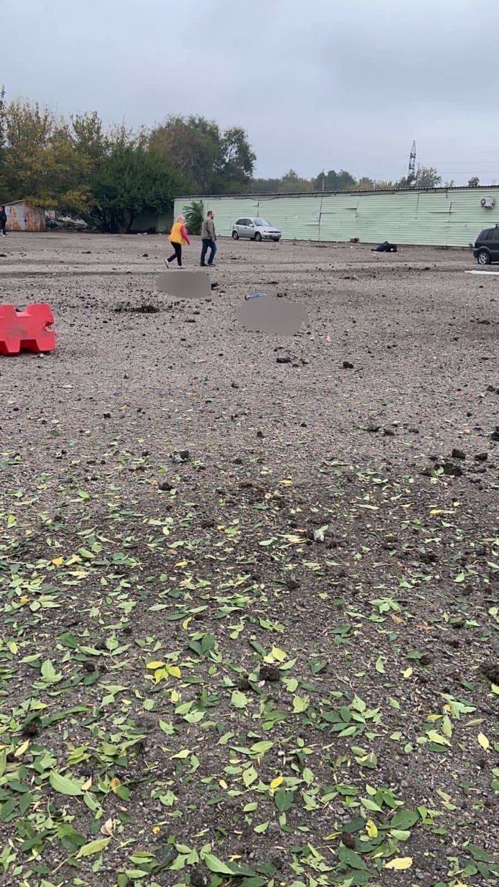 На месте ударов на асфальте образовались воронки, разбиты легковые авто и микроавтобусы.