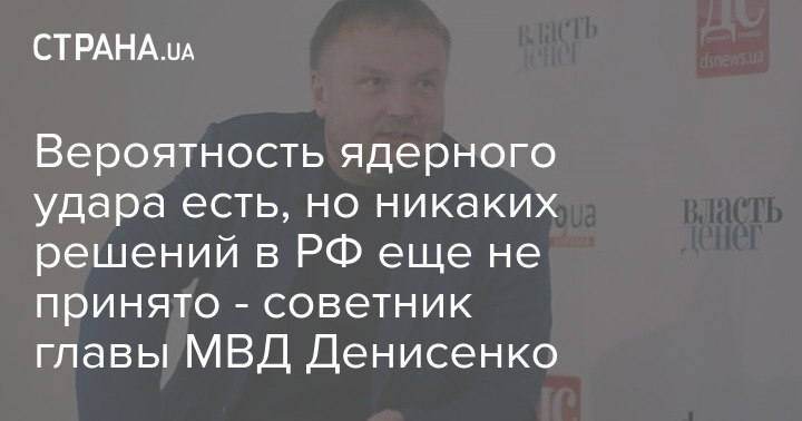 Вероятность того, что Россия нанесет ядерный удар по Украине, есть, однако никаких решений в РФ на этот счет еще не приятно, считает советник главы МВД Вадим Денисенко.