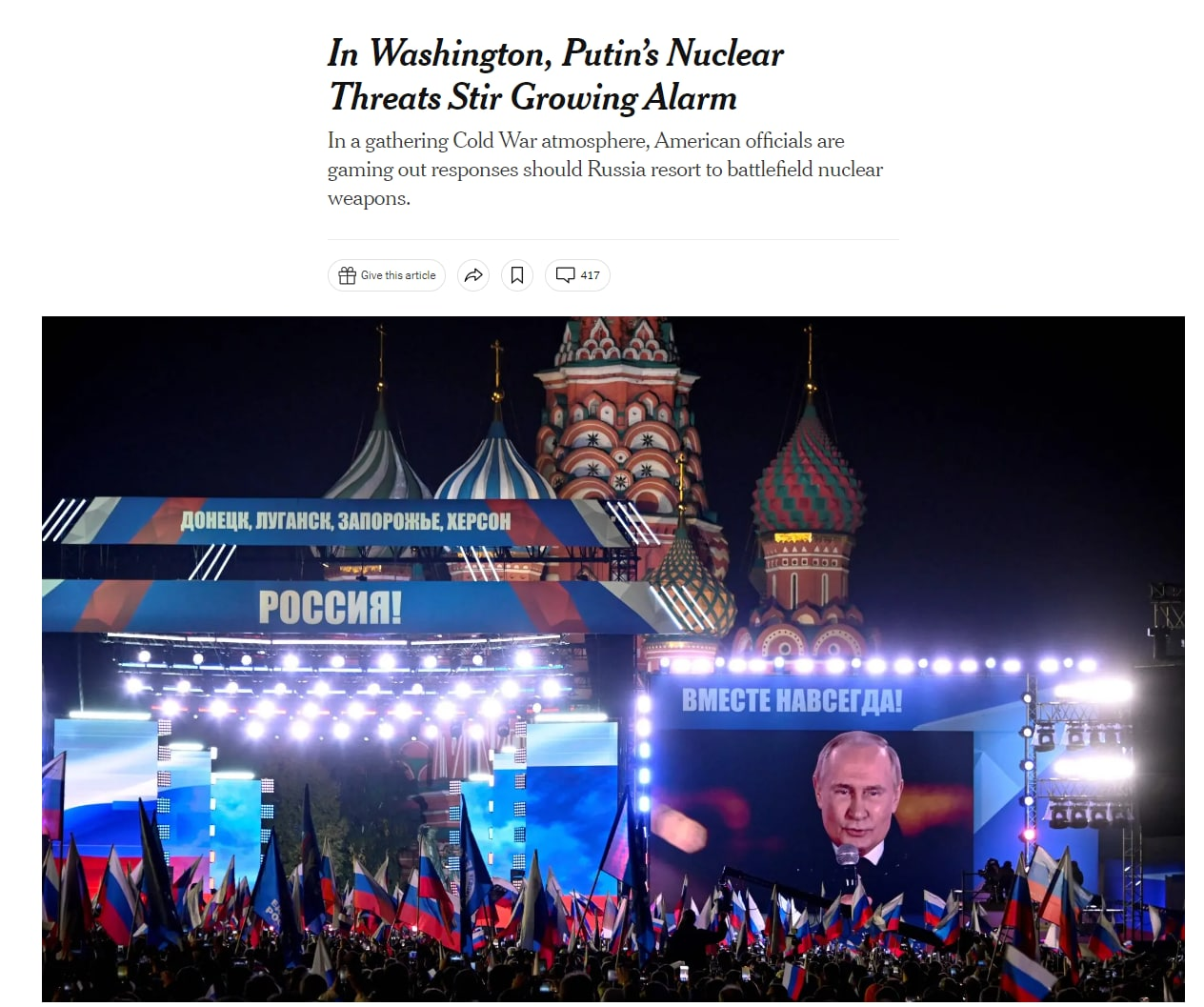 С другой стороны, такая возможность сейчас выше, чем в феврале. Особенно беспокойство Запада растет после аннексии украинских территорий и потери Россией Лимана.