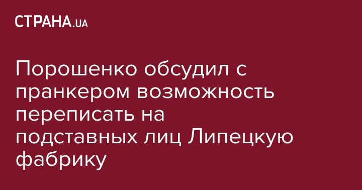 Порошенко обсудил с пранкером возможность переписать на подставных лиц Липецкую фабрику