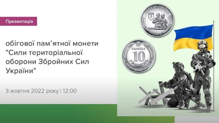 Нацбанк отчеканил памятные монеты "Силы территориальной обороны Вооруженных Сил Украины" номиналом 10 гривен на сумму в 100 миллионов гривен.