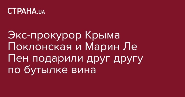 Экс-прокурор Крыма Поклонская и Марин Ле Пен подарили друг другу по бутылке вина