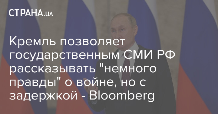 Кремль позволяет государственным СМИ рассказывать "немного правды" о войне, но с задержкой, пишет Bloomberg со ссылкой на источники.