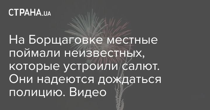 На Борщаговке местные поймали неизвестных, которые устроили салют. Они надеются дождаться полицию. Видео
