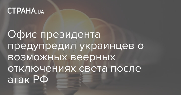Офис президента предупредил украинцев о возможных веерных отключениях света после атак РФ