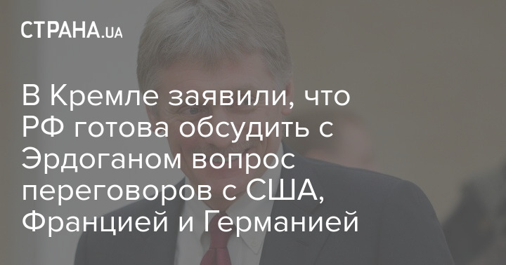 "Вопрос о возможности переговоров России с США, Францией, Германией и Великобританией вполне может быть обсужден с Эрдоганом в Астане", - заявил пресс-секретарь Путина Дмитрий Песков.