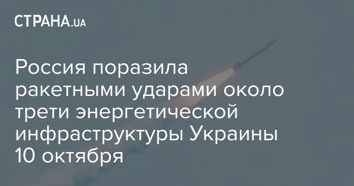 Россия поразила ракетными ударами около трети энергетической инфраструктуры Украины 10 октября