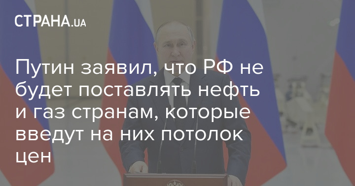 Владимир Путин заявил, что РФ "не станет поставлять энергоресурсы странам, которые ограничат цены на нефть". Он уверен, что ограничения приведут к дефициту, а "никакие финансовые интервенции и распечатывание нефтяных резервов не исправят последствия" введения потолка цен.
