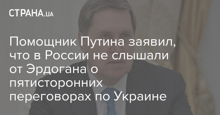 Помощник президента России Владимира Путин Юрий Ушаков заявил, что в РФ "никогда не слышали от Эрдогана идею проведения пятисторонних переговоров об Украине".