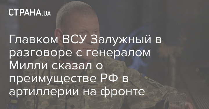 Главком ВСУ Залужный в разговоре с генералом Милли сказал о преимуществе РФ в артиллерии на фронте