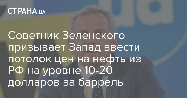 Советник Владимира Зеленского по экономическим вопросам Олег Устенко призывает Запад ввести потолок цен на нефть из РФ на уровне 10-20 долларов за баррель.