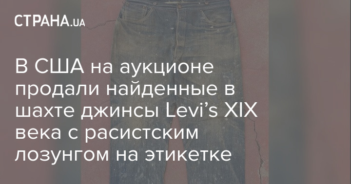 Пара поношенных джинсов Levi’s ХІХ века с расистским лозунгом была продана на аукционе в США за 87 400 долларов.