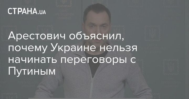 Советник Офиса президента Алексей Арестович объяснил, почему, по его логике, нельзя начинать переговоры с президентом РФ Владимиром Путиным.