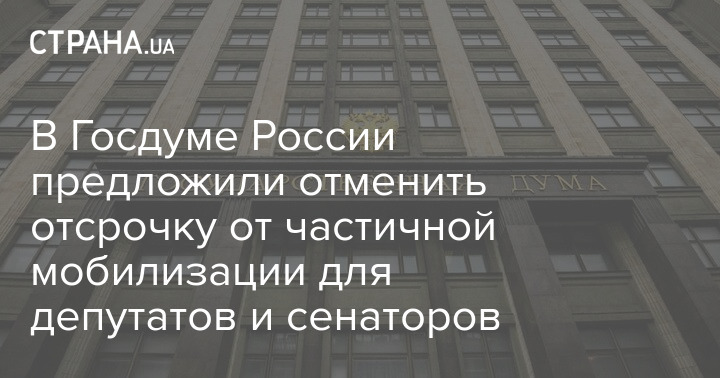 В Госдуме России предложили отменить отсрочку от частичной мобилизации для депутатов и сенаторов, а в первоочередном порядке мобилизовать сотрудников силовых ведомств и уволенных с военной службы в запас.