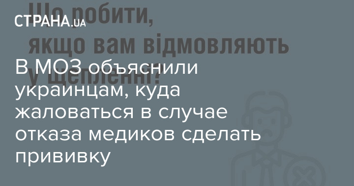 В случае отказа, в МОЗ советуют, спросить и записать имя, фамилию, отчество и должность отказывающего в вакцинации медицинского работника, а также уточнить, на каком основании этим работником дается отказ в вакцинации.