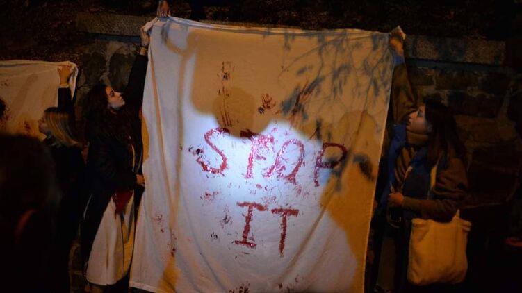 Митингующие принесли под посольство битый кирпич из разрушенных иранскими беспилотниками домов столицы и детские игрушки. Затем их залили красной краской в память о жертвах атак. Протестующие также демонстрировали плакаты "Остановите террор", "Прекратите убивать нас", "Иран поддерживает терроризм".