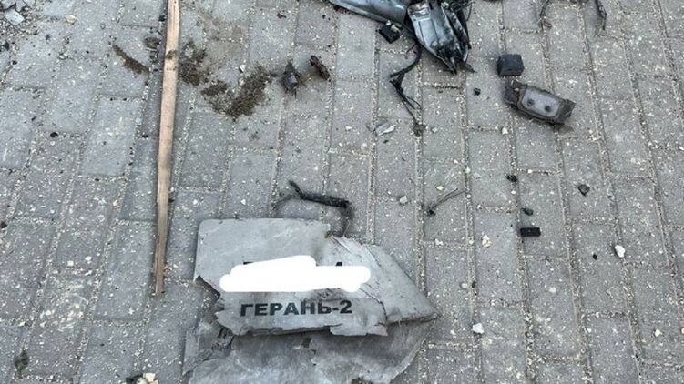Сбитый иранский дрон, маркированный "Герань-2". Фото: Facebook Виталия Кличко