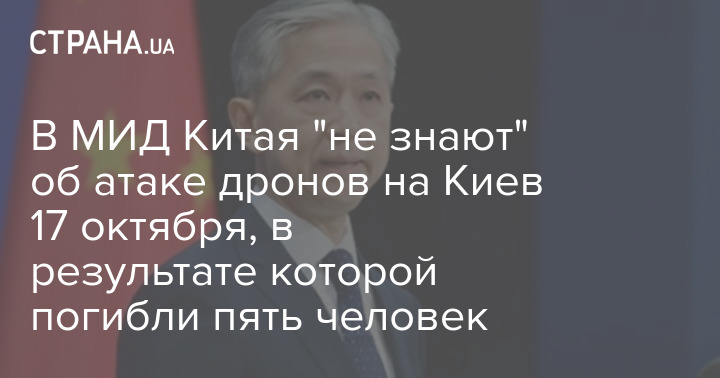 В Министерстве иностранных дел Китая "не знают" об атаке дронов-камикадзе на Киев 17 октября, в результате которой погибли пять гражданских, среди которых беременная женщина.