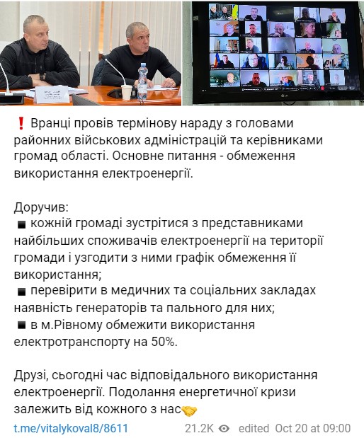 Вместе с тем, в Ровно наполовину сокращают движение электротранспорта, сообщил губернатор Виталий Коваль в телеграм-канале.