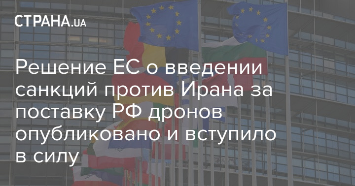 Решение Совета ЕС о введении санкций против компании Shahed Aviation Industries, производящей беспилотники, и трех иранских генералов опубликовано в официальном журнале Евросоюза.