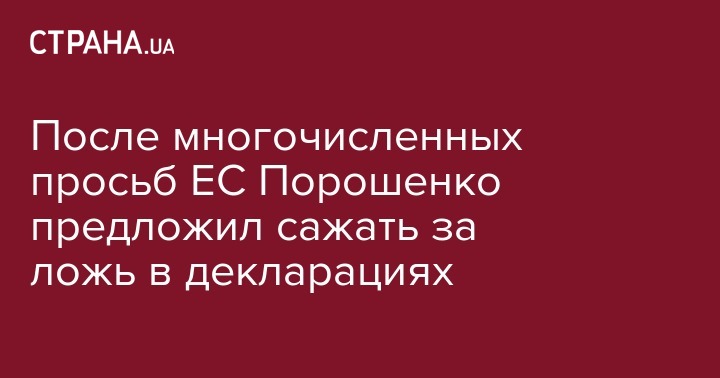 После многочисленных просьб ЕС Порошенко предложил сажать за ложь в декларациях