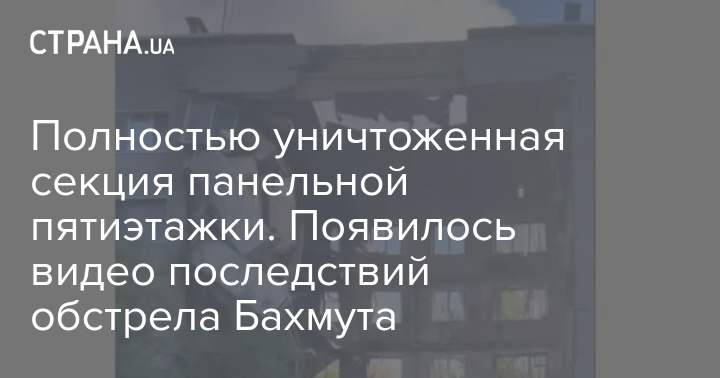 Полностью уничтоженная секция панельной пятиэтажки. Появилось видео последствий обстрела Бахмута
