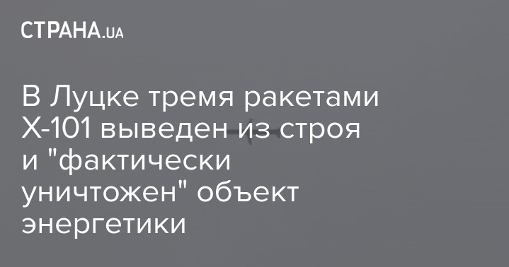 В Луцке тремя ракетами Х-101 выведен из строя объект энергетики, признает мэр города Игорь Полищук. Он называет этот объект "фактически уничтоженным".