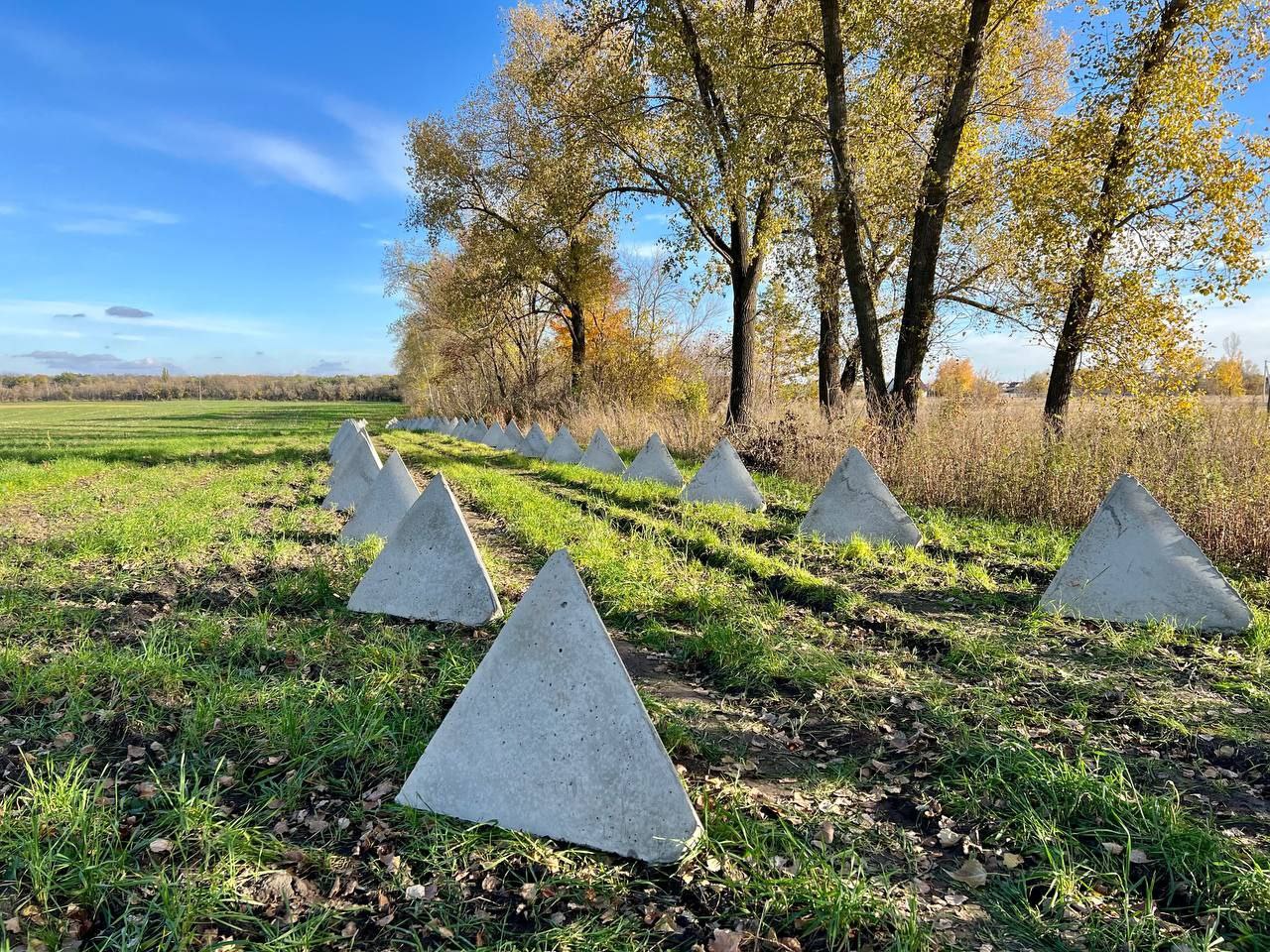 В Белгородской области РФ (граничит с Украиной) тоже начали строить оборонительную линию. Ее основу составляют противотанковые пирамидальные бетонные блоки, как и в случае с "линией Вагнера".