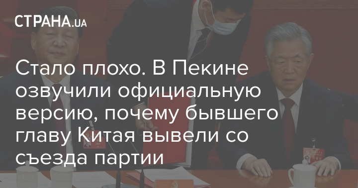 Государственное информагентство Китая "Синьхуа" озвучила официальную версию, почему бывшего главу Китая Ху Цзиньтао вывели из зала заседаний во время ХХ съезда Компартии Китая.