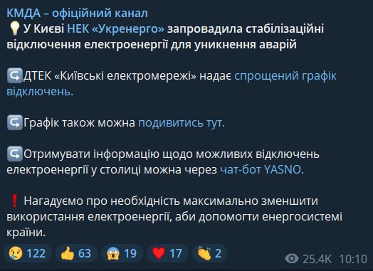 09:40 Укрэнерго сегодня вводит график ограничений энергопотребления для промышленных потребителей по всей Украине.