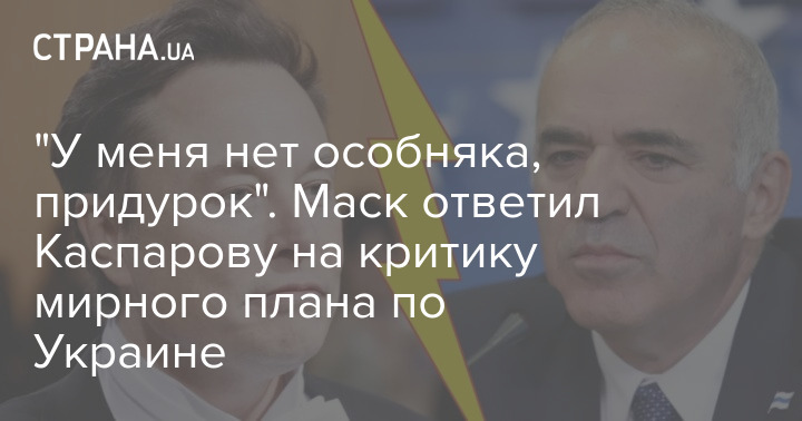 Американский бизнесмен Илон Маск назвал идиотом и придурком шахматиста Гарри Каспарова, который ранее раскритиковал "мирный план" миллиардера по урегулированию украинского конфликта.